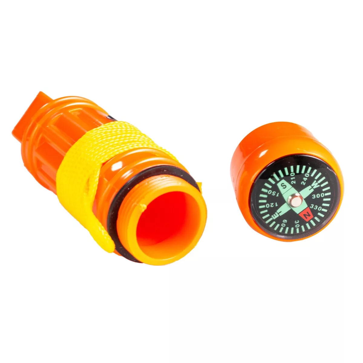 Ideal para actividades náuticas, el silbato permite rescate y el compartimiento estanco mantener secos elementos como fósforos, etc. Si este espacio se encuentra vacío o con poco peso el silbato flota.